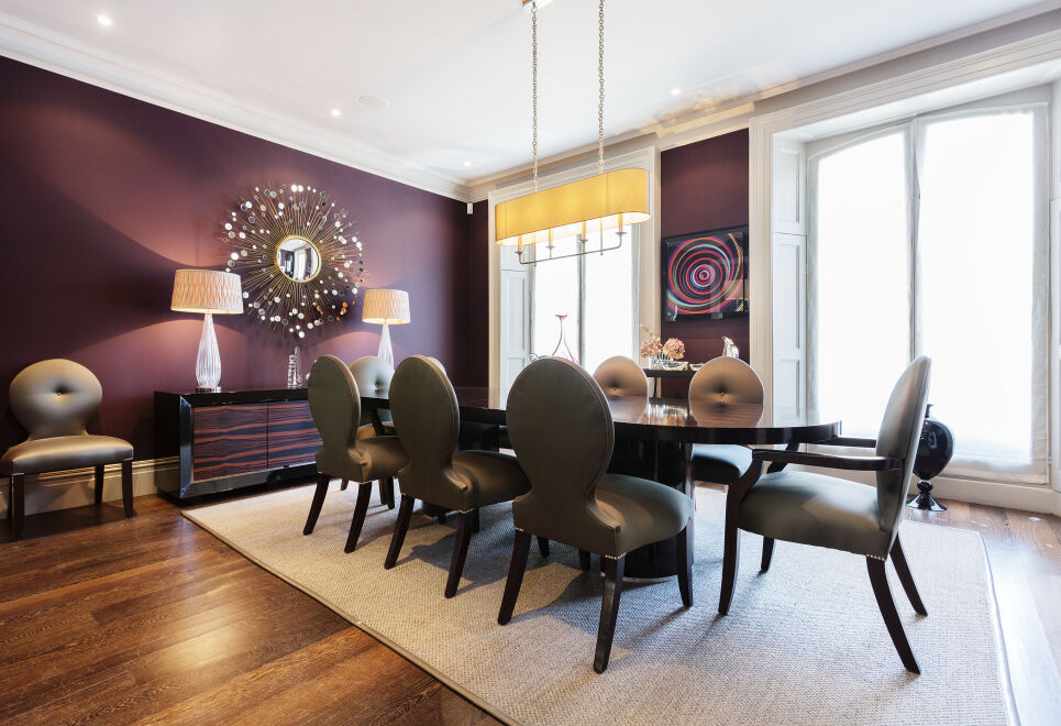 A grandiose entrance hall and lavish stairwell make an unforgettable first impression as you enter a lavish reception area that epitomises grace with its gentle accents of mauve and polished wood floors. This visually enchanting space leads through to an adjoining dining area which hosts a large walnut table with satin chairs nestled under elegant hanging lights. A modern electric fireplace adds to the enlightened charm in a living area that hosts designer chairs and a glass coffee table. Alternatively, you may wish to enjoy the early morning sun on your back with breakfast on the terrace as you appreciate the view out towards the back gardens.